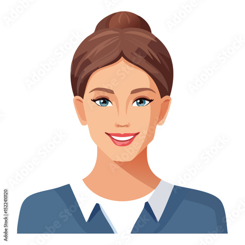 Flat Vector. Portrait of only one Woman. Simple Background.