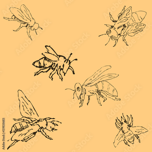 Flies. Sketch by hand. Pencil drawing by hand. Vector image. The image is thin lines. Vintage