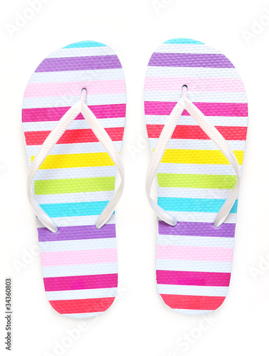 colourful, flip, flop, isolated, pair, rubber, sandal, stripey, swimwear, thong, white