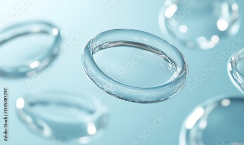 Floating clear rings on light blue background