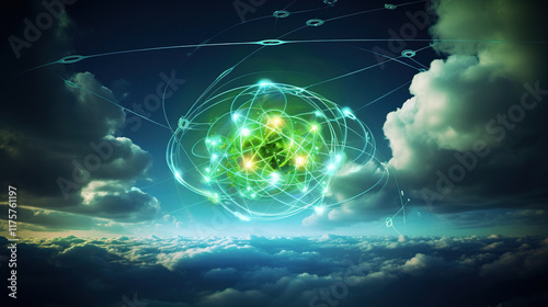 future, cloud, design, energy, light, digital, abstract, imagination, creative, green, glowing, space, system, connection, atom, beautiful, astronomy, art, modern, sky, nature, globe, universe, technology, network