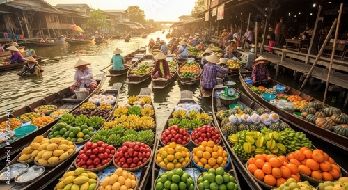 market, boat, food, fruit, river, seller, asia, travel, bargain, buyer, commerce, culture, daily, destination, diverse, eat, ethnic, exotic, fair, farm, fresh, gathering, green, harvest, hong, bustling, illumination, journey, lifestyle, local, lush, merchant, morning, navigable, nourishment, orange, people, produce, rainforest, red, retail, scene, shopping, spice, store, street, sunlight, supply