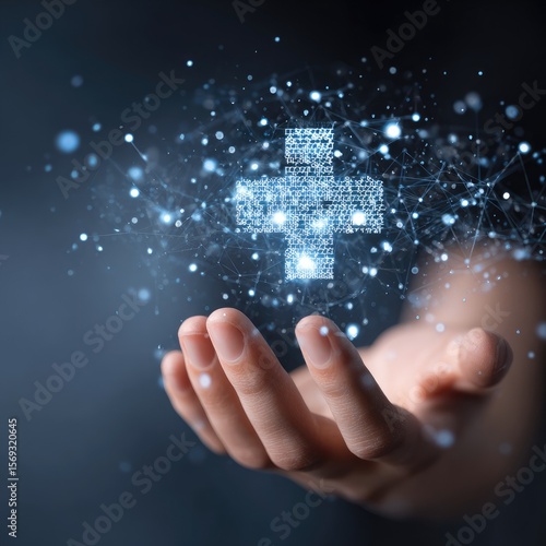 hand, plus, symbol, digital, floating, light, glowing, network, technology, medicals, health, care, future, innovation, science, connection, datum, virtual, graphic, design, light blue, symbolism, wellness, healing, patient, support, caregiver, interface, representation, virtualization, information, connectivity, interaction, modern, image, hovering, empowerment, hope, progress