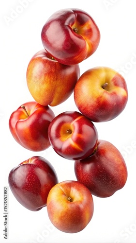 Floating Stack of Fresh Nectarines Against a Plain White Background in Studio Lighting