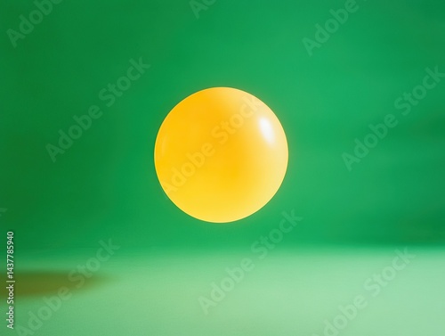 Floating Yellow Orb: A vibrant yellow sphere hovers against a contrasting green background, casting a soft shadow.