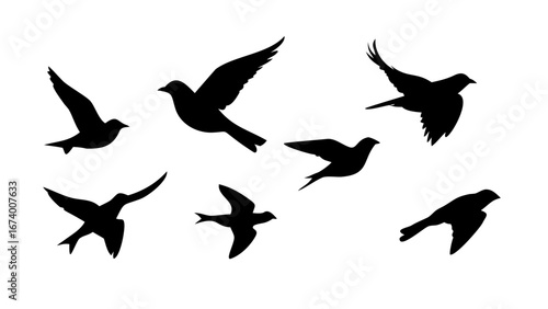black, crow, bird, flying, flock, silhouette, nature, wildlife, sky, freedom, movement, wing, dark, pattern, design, graphic, isolated