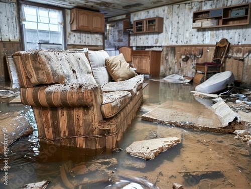 flood, water damage, basement, disaster, at water level, submerged, furniture, debris, destruction, emergency, moisture, flooding, restoration, natural disaster, cleanup, residential