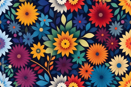 floral abstract colourful flat flower mosaic background