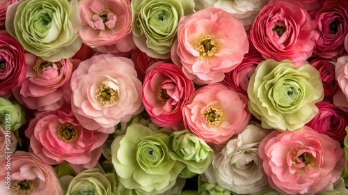 Floral background of fresh beautiful roses in pink, white and green colors. Floral decoration and arrangements.