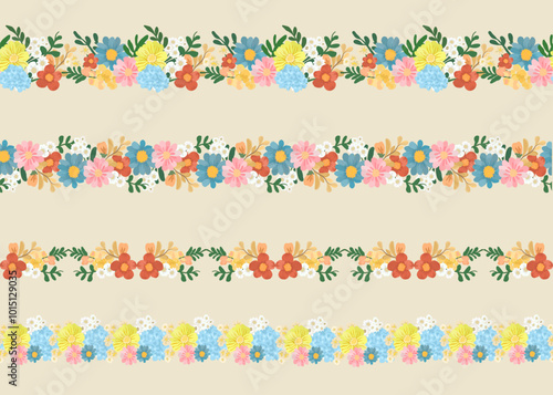Floral Border Pattern with Colorful Flowers
