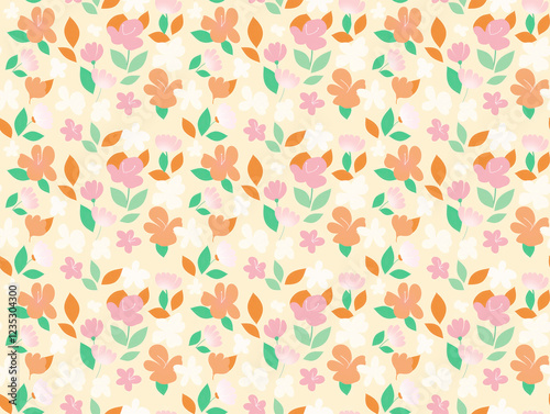 spring, flower, seamless pattern, floral pattern, retro, floral, floral pattern, vintage, pastel, leaf, pattern, background, design, fabric, textile, wallpaper, wrapping paper, illustration, art, print, graphic design, cute, cheerful, vibrant, colourful, summer, nature, feminine, delicate, whimsical, abstract, modern, contemporary, creative, digital artwork, artistic, hand-made, decorative, texture, stylish, trendy, project, scrapbook, stationery, home decor
