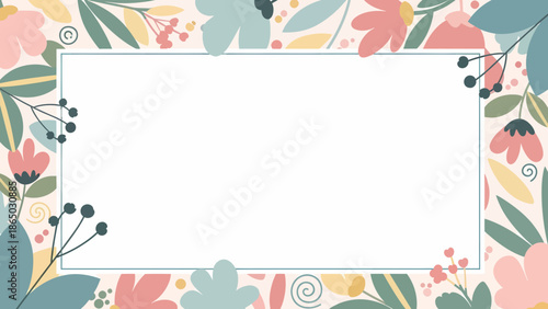 floral, frame, pastel, flower, leaf, border, white, space, rectangle, decorative, design, background, pattern, spring, summer, botanical, art, illustration, template, card, invitation, nature, element, graphic