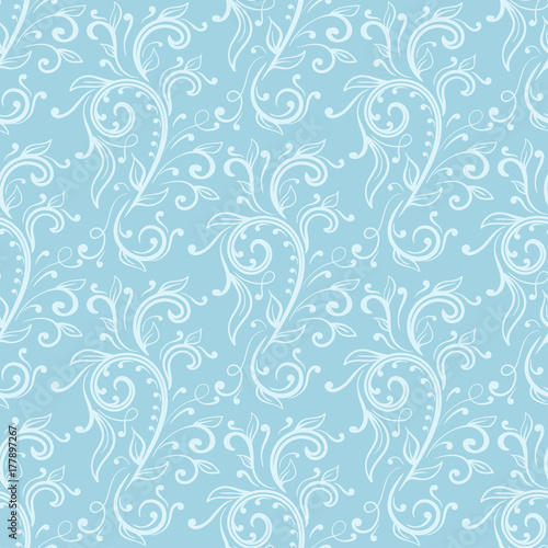 Floral ornaments. Blue seamless pattern