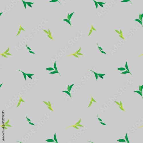 Floral seamless leaf pattern. Light and dark green leaves and sprouts. Illustrated background. Vector. Print for textile or web