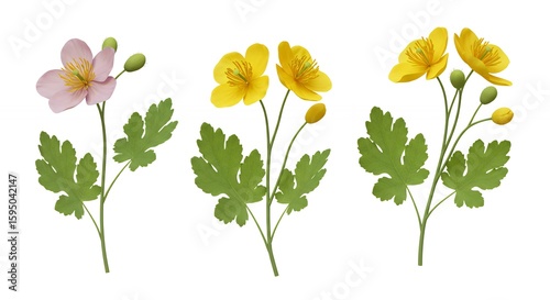 flower, floral, plant, pink, yellow, green, leaf, stem, blossom, isolated, white, background, nature, spring, beauty, decor, design, illustration, graphic, image, vector, digital, art, floral pattern, decoration, photo, detail, closeup, copy space
