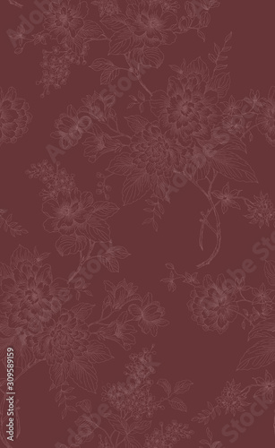 Floral vintage seamless pattern with flowers peonies. Oriental style. Template design for textiles, wrapping paper, wallpaper, clothes, interior, curtains, packaging.