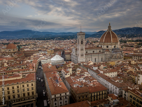Florence Firenze aerial panorama landscape of the Renaissance city center with the dome