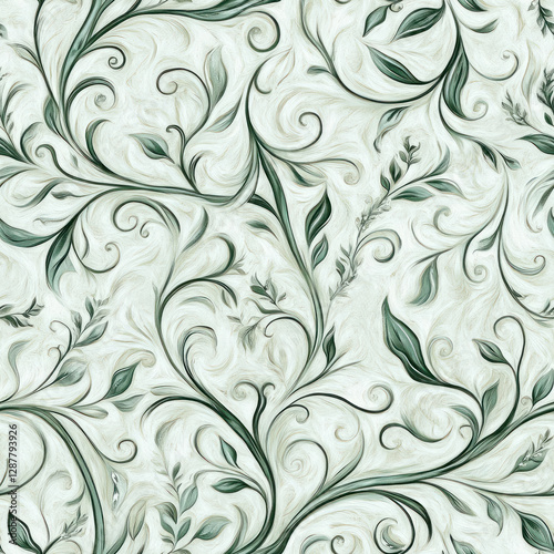 pattern, texture, background, floral, design, abstract, art, illustration, ornament, decorative, wallpaper, nature, plant, vine, leaf, swirl, curl, green, white, elegant, aesthetic, seamless, textile, fabric, surface, organic, flowing, botanical, motif, graphic, decoration, repetitive, creative, style, ornamentation, repeating, modern, contemporary, vintage, art nouveau, arts and crafts, floral pattern, invitation, card, template, presentation, website, cover