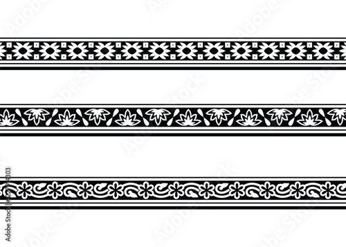 Flower And Geometric Design Border, Fabric Border, Embroidery.