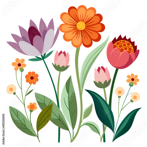 flower, nature, vector, plant, summer, floral, illustration, leaf, spring, flower, pattern, garden, art, design, tulip, bouquet, blossom, decoration, orange, beauty, yellow, pink, bloom, card