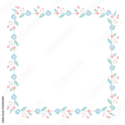 square, flower, berry, plant, frame, vector, illustration, pattern, summer, nature, art, floral, colours