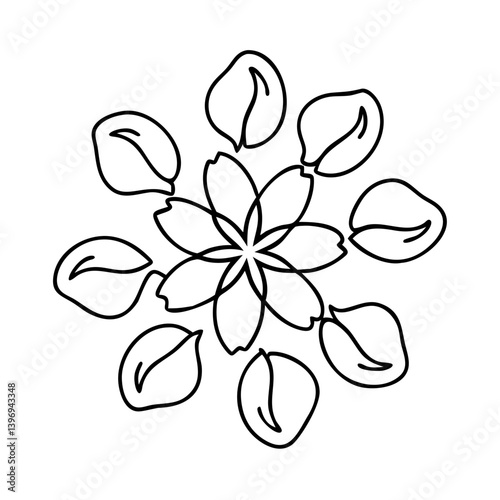 flower petals, icon, illustration, isolated, line, line art, minimalist, modern, object, outline, signs, simple, stroke, symbol, thin, vector, web, web icon, black, black-and-white, decoration, design, flat, abstract