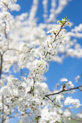 Flowering branch of fruit tree. Cherry blossomed in the spring.