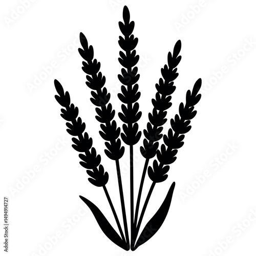Flowering Lavender Stalk – Solid Black Silhouette Art