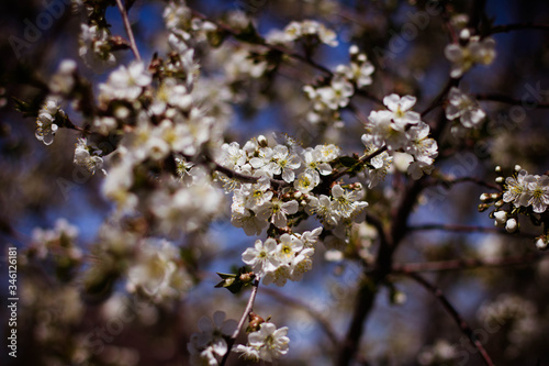 flowering tree in the garden, branches with flowers