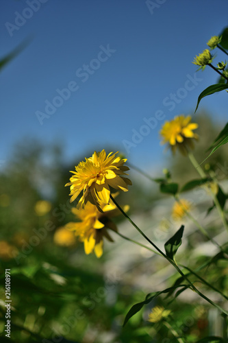 Flowers golden balls Rudbeckia laciniata against the blue sky