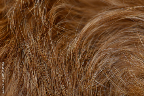 Fluffy Red Dog Coat Texture in Down and Shade Details Close-Up