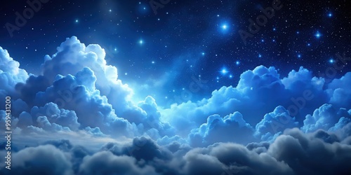 cloud, night, fluffy, volumetric, dark blue, sky, star, background, nature, weather, astronomy, atmospheric, peaceful, serene, tranquil, beauty, celestial, evening, scenic, view, outer space, moonlight, picturesque, aethereal