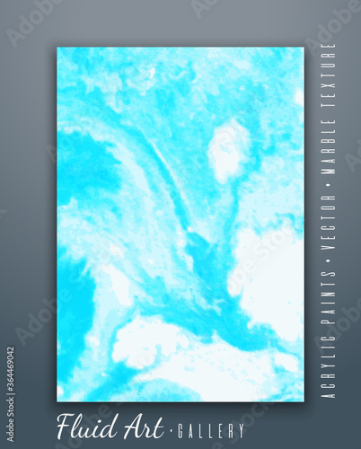 Fluid art. Abstract vector background. Marble and sea wave texture. Blue shades. Liquid acrylic paints. Fashionable modern design. Template for posters, invitations, book covers, presentations..