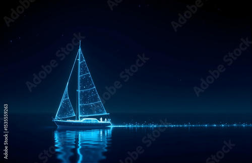 sailboat, fluorescent, navigation, starlight, track, blue, water surface, calmness, dream, technology, art, transport, abstract, ocean, night, voyage, aglow, line, aesthetic, mysterious, quiet, creative, atmosphere