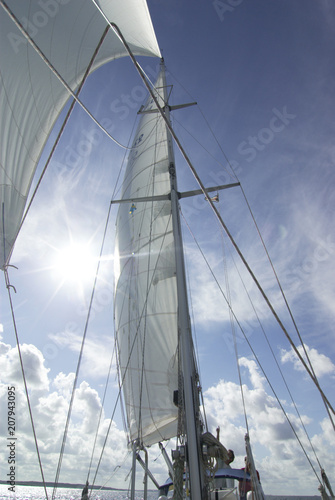 Flying a colorful spinnaker on a seaworthy sailing yacht