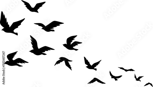 bird, silhouette, flying, sky, flight, avian, nature, freedom, bird, artistic, peaceful, flock, wing, wildlife, shadow, scenery, outdoors, illustration, group, pattern