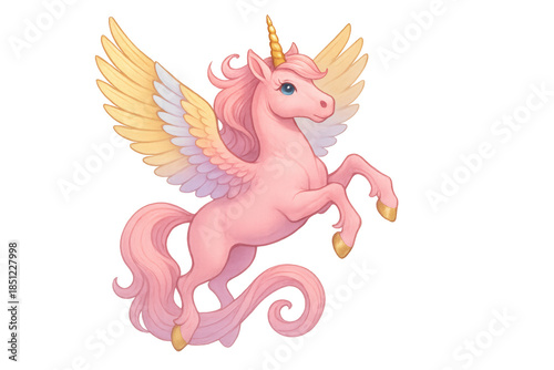 unicorn, pegasus, winged, horse, fantasy, magic, mythical, creature, fairy tale, dreaming, mystical, childhood, imagination, wonder, pink, flying, rearing, gold, horn, hoof, cartoon, illustration, character, design, element, isolated, transparent, background, pretty, cute, whimsical, dream, enchanted, legendary, folklore, spirit, aethereal, divine, angelic, bright, sparkling, glow, iridescent, light, peaceful, graceful, beauty, joyful