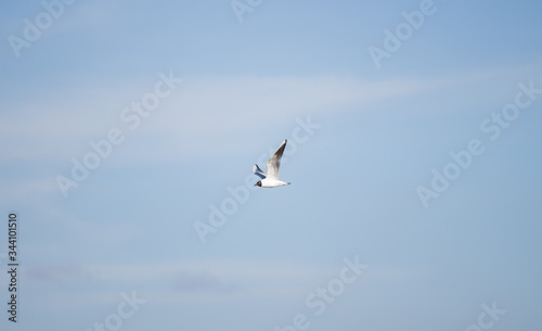 flying seagull in the open sky
