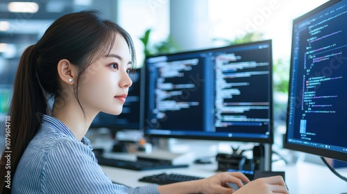 focused, action, interaction, of, software, professional, chinese, woman, programming, ai, project, modern, concentration, innovation, environment, gaze, coding, technology, screen, development, datum, analysis, creativity, computer, digital, design, engineer, teamwork, research, intelligence, application, algorithm, solution, cognition, performance, skill, multitask, education, learning, career, task, graphic, user, system, language