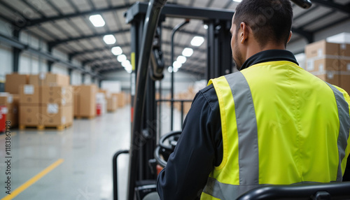 forklift, warehouse, pallet, production, men at work, operation, logistic, male, adult, focused, yellow vest, box, organised, roomy, industry, transportation, machinery, efficiency, cargo, safety, delivery, bright, indoor, large, equipment, job, tied-up, urban, contemporary, background, movement, skill, labor, perspective, action, height, professionalism, tool, handling, inventory, facility, storage, business, service, freight, arrangement, no people