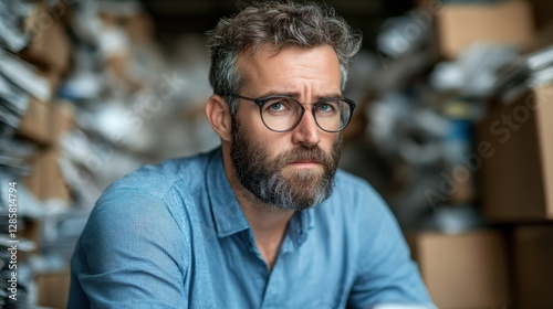 researcher, statistic, analysis, datum, office, workspace, clutter, paper, box, concentration, insight, expertise, study, male, adult, beard, goggles, thinking, professional, serious, academic, information, chart, document, technology, observation, cognition, laptop, writing, problem, solution, method, research, strategy, sharpened, environment, background, tied-up, determination, project, productivity, organisation, facial expression, modern, workplace
