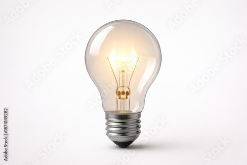 Focused shot of a lit light bulb on a neutral white background