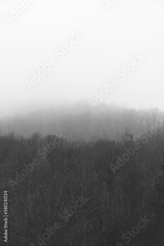 Foggy forest hill