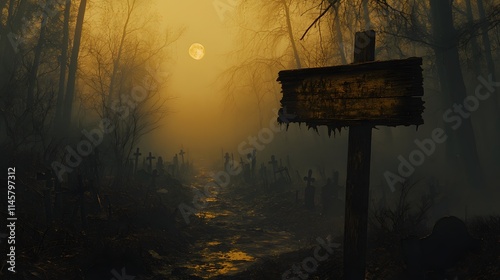 forest, path, cemetery, cemetery, moon, full, fog, misty, tree, skittish, halloween, night, dark, ominous, mysterious, creepy, scarey, eerie, haunted, desolate, gravestone, cross, grave, death, silence, shadow, mystical, supernatural, atmosphere, landscape, scene, image, artwork, digital, art, illustration, gothic, october, autumn, winter, cold