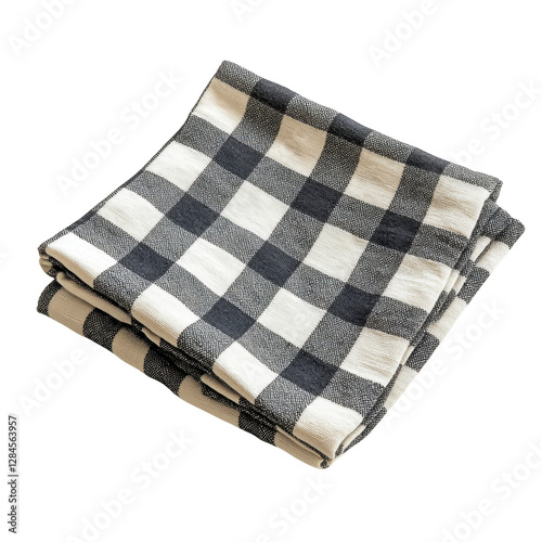 Folded checkered fabric napkin isolated on a white transparent background