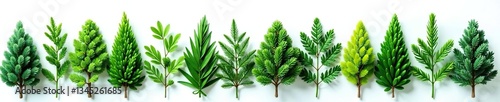 Foliage from the fir tree isolated on a clean white surface, greenery, coniferous trees