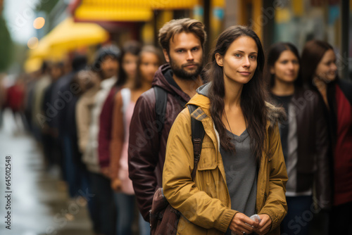 Food Insecurity. Individuals waiting in line for food assistance, highlighting the challenges of access to nutritious food. Generative AI.