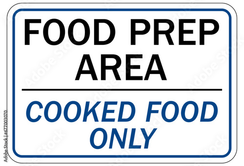Food preparation and production sign and labels cooked food only