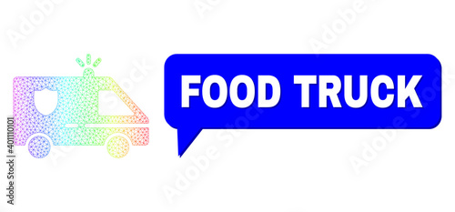 Food Truck and police car vector. Spectrum colored net police car, and speech Food Truck bubble frame. Speech colored Food Truck bubble has shadow.
