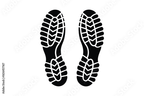 footprint, footprint, shoe, shoe, sole, sole, boot, boot, hiking, walking, trail, track, black, white, isolated, vector, illustration, icon, symbol, design, graphic, adventure, trekking, footwear, print, pattern, texture, step, step, path, direction, travel, ground, surface, mark, imprint, silhouette, foot, foot, sport, activity